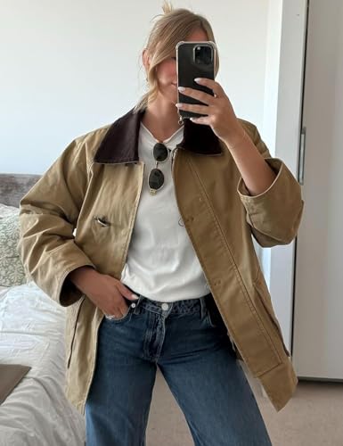 • Fabric: Oversized canvas jacket made of skin-friendly, breathable fabric, comfort to wear, an ideal choice for women 2024 trendy