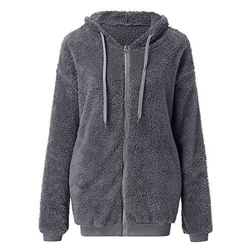 HOT ! Womens Warm Fuzzy Zip Up Hoodies Oversized Sherpa Jacket Faux Fur Fleece Winter Coats Hooded Plush Jackets