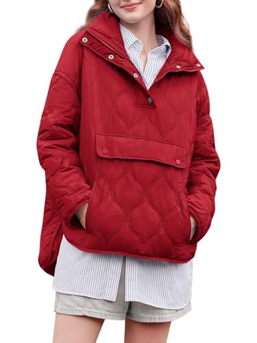 HOT ! Yousify Womens Puffer Jackets Pullover Quilted Lightweight Jacket Long Sleeve Half Zip Up Coat with Pocket S-2XL