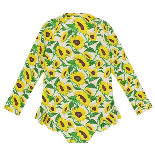 Sunflower Flower Girls Long Sleeve Rashguard Swimsuit UV Protection One-Piece Swimwear Bathing Suit B0404511 2