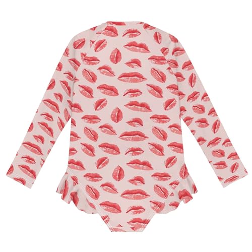 Red Lips Girls Long Sleeve Rashguard Swimsuit UV Protection One-Piece Swimwear Bathing Suit B0404767 7