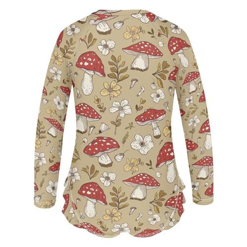 CaTaKu Girls One Piece Swimsuit Amanita Mushroom Toddler Bathing Suit Long Sleeve UPF 50+ Rash Guard Swimwear 3-12Y 7