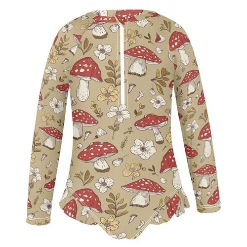CaTaKu Girls One Piece Swimsuit Amanita Mushroom Toddler Bathing Suit Long Sleeve UPF 50+ Rash Guard Swimwear 3-12Y 5