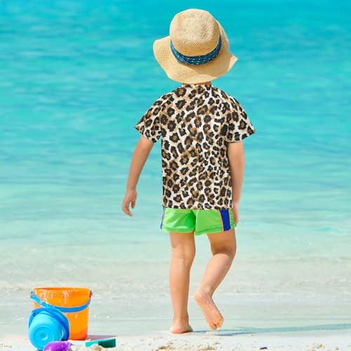 Kids Rash Guard Girls Boys Toddler Swim Shirts Short Sleeve Animal Leopard UPF 50+ 3T 5