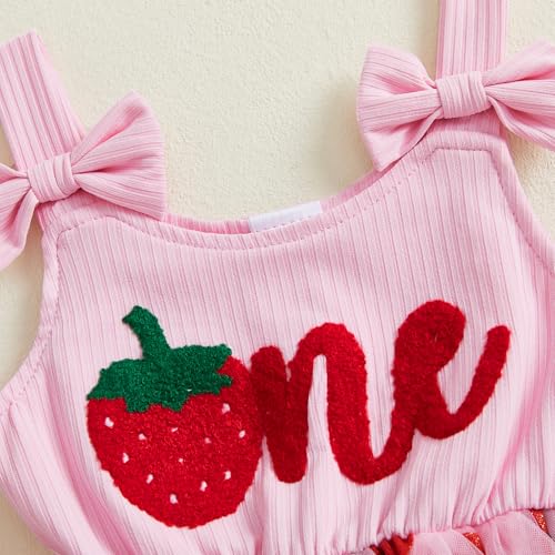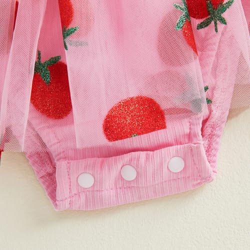 Emmababy Baby Girl Strawberry Romper Dress Smocked Tutu Bodysuit Fruit Overalls Strawberry Birthday Outfit Summer Clothes 4