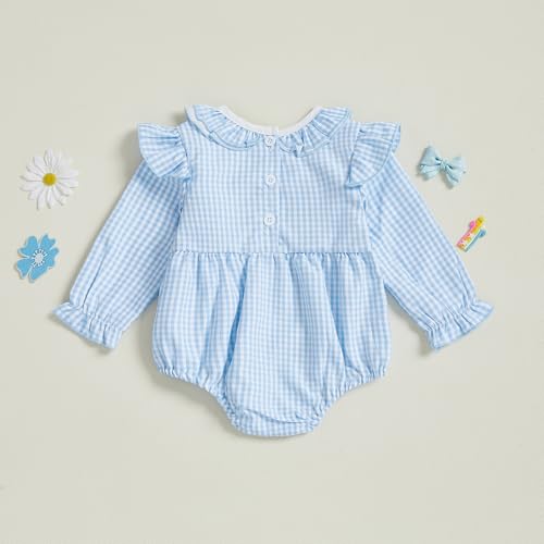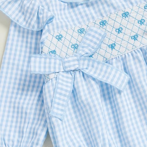 More information about Newborn Baby Girl Fall Outfit Floral Bow Smocked Bubble Romper Doll Collar Ruffle Long Sleeve Plaid Bodysuit Clothes