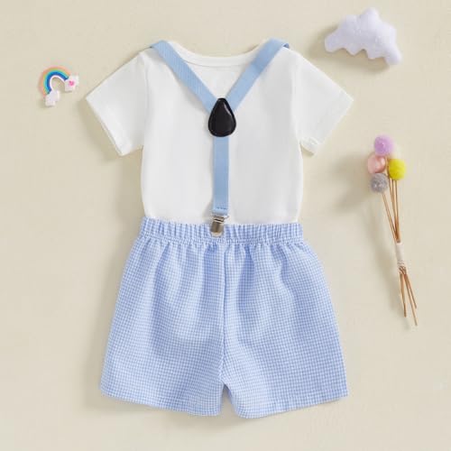 • SIZE: Suitable for infant 0-3months 3-6months 6-12months boy, toddler 6-12months 12-18months 18-24months boy. What you get: Romper + Shorts + Suspenders