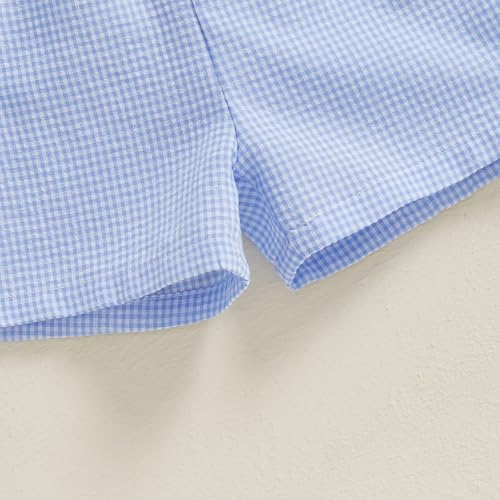Baby Boys Tractor Outfit Toddler Summer Clothes Embroidery Romper + Suspender Plaid Shorts 2 Pieces Set 5