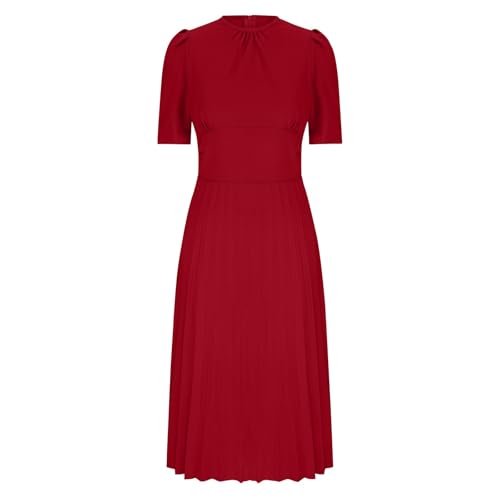 HOT ! Womens Pleated Work Formal Dresses Fashion Mock Neck High Waisted Ruffle Sleeve Homecoming Dresses A-Line Midi Dress