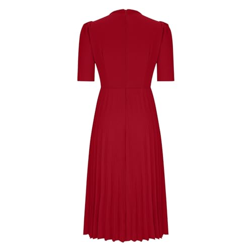 More information about Womens Pleated Work Formal Dresses Fashion Mock Neck High Waisted Ruffle Sleeve Homecoming Dresses A-Line Midi Dress