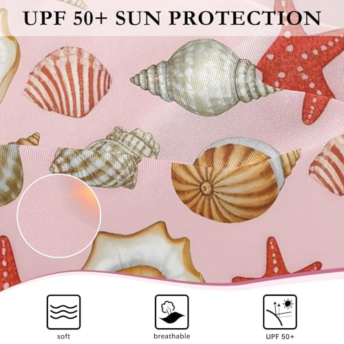 ALAZA Conch Starfish Seashell Girls One Piece Swimsuit Long Sleeve Rash Guard Swimsuits UV 50+ Swimwear Zipper 5