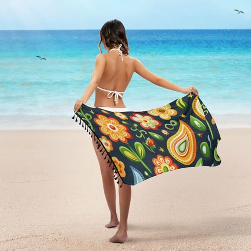 More information about Cartoon Childish Paisley Pattern Pattern Olive Cover Up Dress Junior Soft Cover Ups For Swimwear Beach Dresses 45x70in