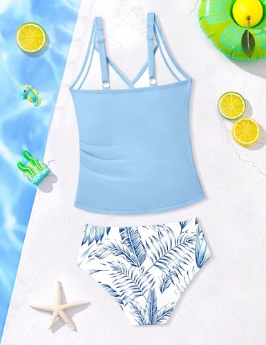 Girls Tankini Swimsuit Twist V Neck Bathing Suit Ruched Girls Swimsuit Two Piece Printed Girls' Swimwear 9-16 Years 5