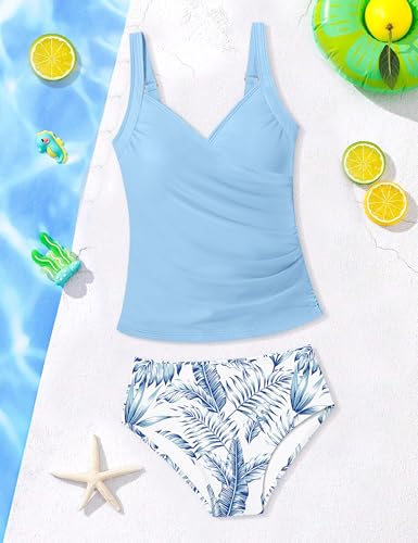 • 🎁 Complete Package & Care: The girls' swimwear includes 1 x ruched tankini top + 1 x tropical print high waisted bottom. Machine wash cold (no bleach) and air dry to maintain color brilliance. A thoughtful gift that lets your girl shine confidently in summer!