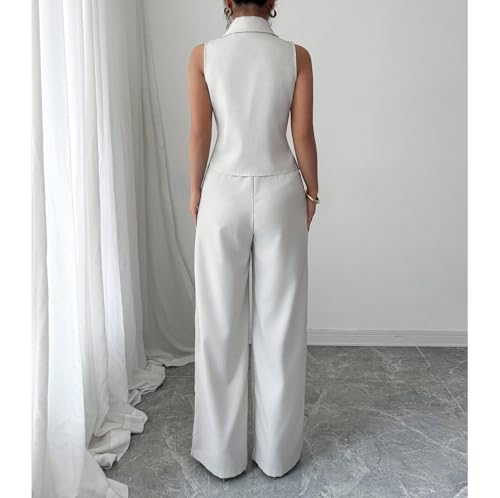 Women's Two Piece Sleeveless Business Suit Vest and Wide Leg Pants Set 4