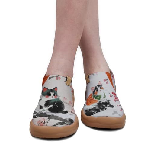Women's Fashion Sneaker Ladies Travel Shoes Cat Painted Knit Slip On Loafers 6