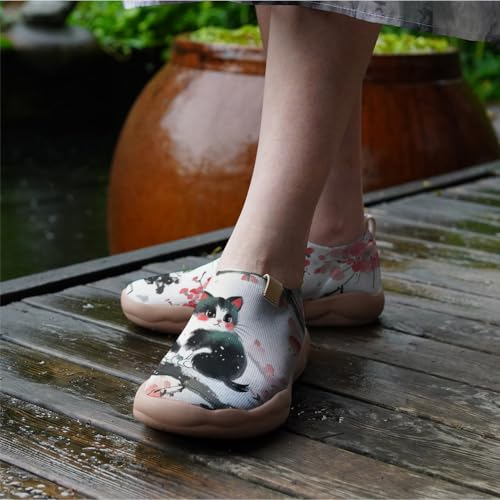 Women's Fashion Sneaker Ladies Travel Shoes Cat Painted Knit Slip On Loafers 4