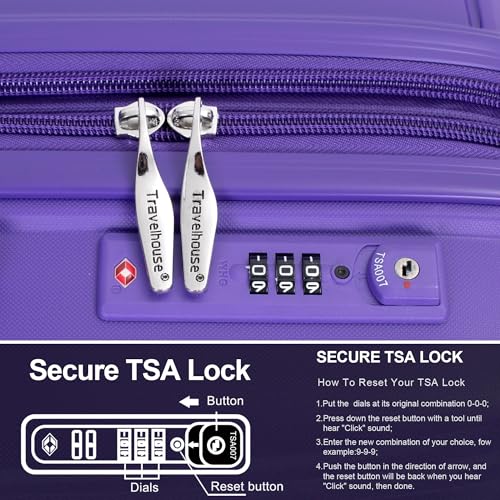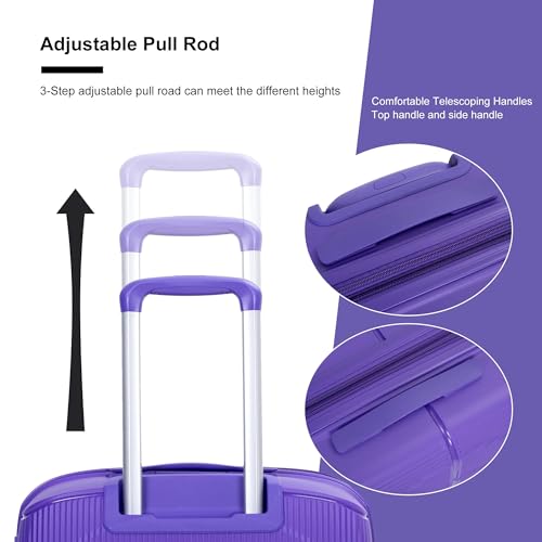 Expandable 3-Piece Luggage Set (20" / 24" / 28"), Durable & Lightweight PP Hardshell Suitcase with 360° Double Spinner Wheels and TSA Lock, Carry-On & Checked Travel Gear Set (Purple) 4
