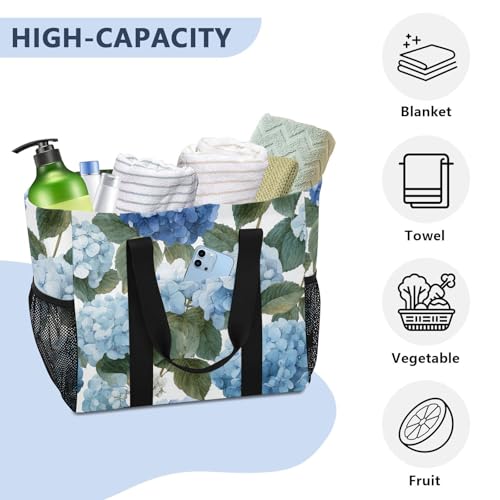 Beautiful Hydrangea Flowers Pattern Beach Tote Pool Bags for Women Ladies Large Waterproof Gym Tote Carry On Bag for Weekender Swim Gym Shopping Travel Daily Bag 7