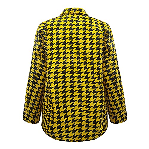 Women's Plaid Notched Lapel One Button Houndstooth Blazer Jacket Business Casual Jackets Long Sleeve Slim Fit Blazers 4