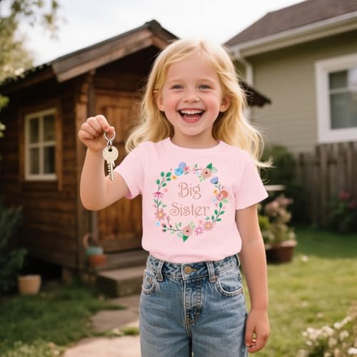Big Sister Shirts for Girls Cute Floral Childrens T-Shirt Promoted to Big Sister Tee Tops 4