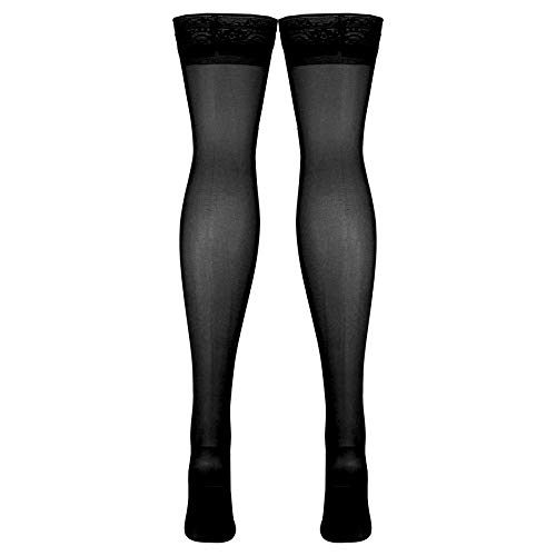 • Closed Toe foot; Above knee mid-thigh length; Lace top grip lined band prevents hosiery falling down