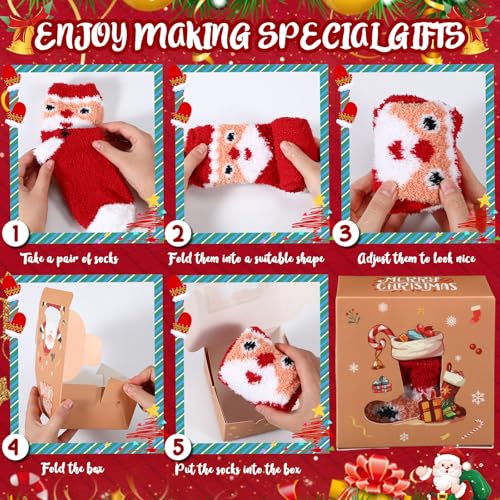 Sole material: 93% polyester, 7% spandexAll-in-one Christmas Gift Solution: includes 60 festive fuzzy socks in 12 styles (5 pairs per style) and 60 kraft Christmas cookie boxes with windows (4 box designs), making holiday gifting fun and full of meaning—boxes arrive flat for DIY folding and sock assembly, ideal for creating heartfelt sets with family, friends, or students; No extra wrapping supplies neededDelightful Festive Designs: these fluffy slipper socks feature 12 festive Christmas-themed patterns in vintage red, green, and white, with cheerful elements like snowmen, Santa Claus, Christmas trees, and gingerbread men, ideal for spreading cheer—for family, friends, classmates, coworkers, and Christmas party favors; Enough to gift, wear, and shareOne Size Fits Most Women Comfortably: these Christmas fuzzy socks fit women's US shoe sizes 5–10 with good stretch for a fit; Assembled gift boxes measure 4 x 4 x 2.5, creating a warm Christmas atmosphere and making your gift feel thoughtful and specialWarm, Soft Breathable Material: made of quality coral fleece (93% polyester, 7% spandex), these slipper Xmas holiday socks are soft to the touch, warm without being bulky, and breathable—ideal for keeping feet comfy on chilly winter days; Hand wash, machine wash in cold water, or tumble dry on low to prevent shrinkageVersatile Holiday Use: these Christmas cookie box socks are ideal as Christmas stocking stuffers, classroom handouts, Christmas party gifts, or cozy indoor wear; Good for teachers, teams, church events, guest baskets, birthdays, anniversaries, home gatherings, office events and more—also a thoughtful gift for your girlfriend, wife, daughters, or friends; Bulk pack makes it easy to prepare for unexpected gifting needs Perfect for everyday use. premium materials and excellent craftsmanship ensure long-lasting durability.