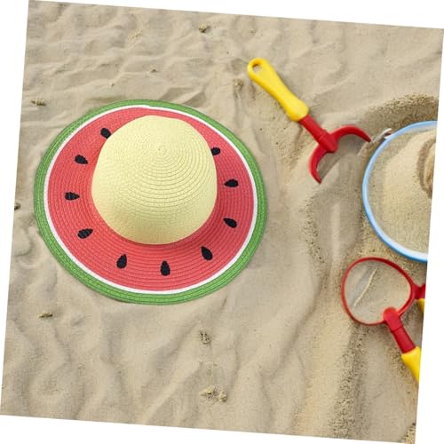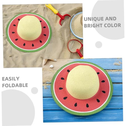 Watermelon Straw Sun Hat for Girls Lightweight Beach Cap Wide Brim Cute Outdoor for Beach Activities and Travel 5