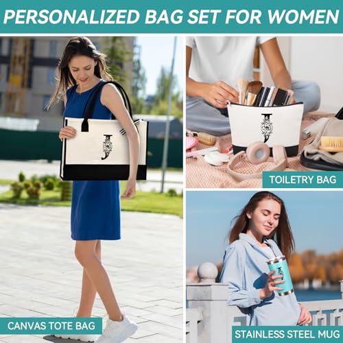 Mother's Day Gifts for Women Her - Initial Canvas Tote Bag & Makeup Bag, Personalized Birthday Gifts for Mom