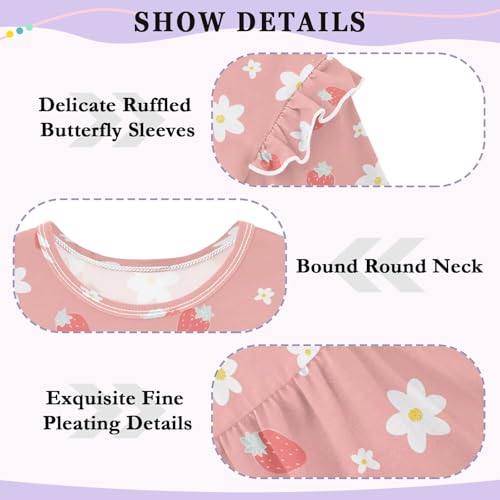 Strawberry White Flower Girls Shirts Cotton Long Sleeve Ruffle Toddler Tee Tops 4