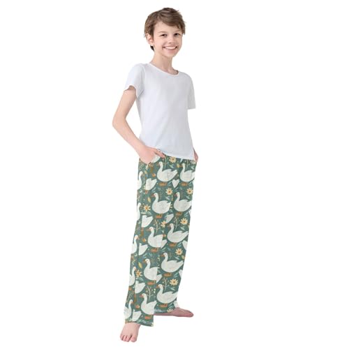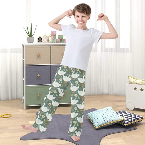 Pajama Bottoms, Cute White Ducks and Flowers Sleeping Pant Lounge Wear Pajamas Long Pants Sleepwear Pjs 4
