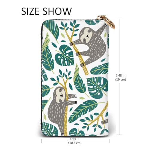 Why Choose Sloths Tropical Palm Leaves Men'S Women'S Leather Wallet Cell Phone Purse Fashion Clutch Wristlet Bag?