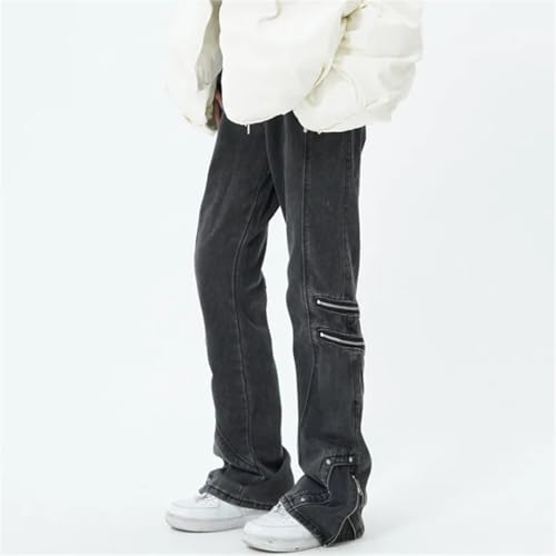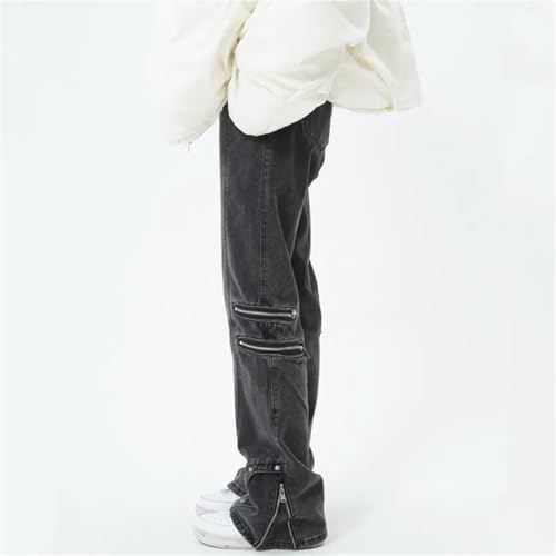 Men Streetwear Vintage Jeans Cargo Pants Clothing Ankle Zipper Straight Long Trousers 6