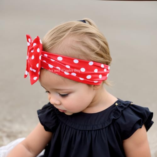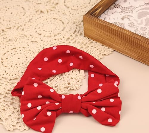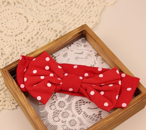 Stretchy Baby Girls Nylon Bows Headbands Polka Dot Turban Hair Bows Knots Tied Elastic tender Hair Band for Newborn Infant Toddlers Kids (Red with White Polka Dots A, Standard)