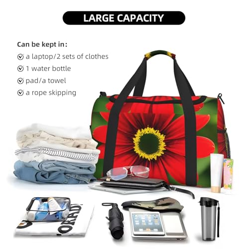 Material: This Red Flower Print Hand Travel Bag Made Of Polyester,Can Be Folded To Storage When Not In Use.Smooth Zipper Closure, Convenient To Use.Size: 19.7 X 10.2 X 13 Inch / 50 X 26 X 33cm. Greatly Save Space After Folding, Easily Carry With Your Flight After Expansion.Multipurpose : Suitable For Kinds Of Occasions,Airplane Friendly Travel Bag, Used As A Duffel Bag, Gym Tote, Weekend Bag, Carry On Bag, Beach Tote. Perfect For Travel, Short Journey, Vacation, Business, Weekend Trip, Gym, Sports,Beach Or Other Daily Use.Large Capacity:A Main Pocket And A Inner Zipper Bag, There Are Plenty Of Room For Storagestore Your Clothes, Cosmetic, Towel Or Other Travel Essential Things. Equipped With A Strap, Adjustment Range Between 70-120cm (The Range Does Not Include The Lock), The Length Of The Hand Belt Is About 65cm, There Is A Mesh Bag On Each Side .For Water Bottle And Umbrella. Ensuring You Have Somewhere To Store Everything.Print Design:The Distinctive And trendy Pattern Print Design Allows You To Be Standing Out And Shows Your Stylish Personality. This Distinctive Travel Bag Is A Choice For Family Or Friends As A Gift. Perfect for everyday use. premium materials and excellent craftsmanship ensure long-lasting durability.