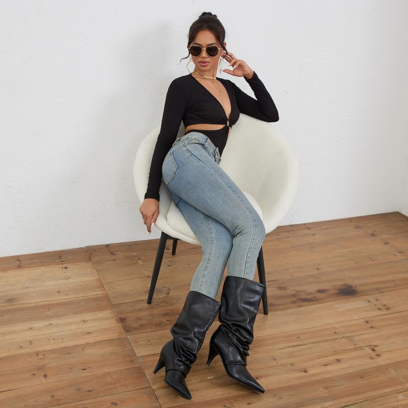 • [Pointed Toe Faux Fold Over Boots]: The design of fold over boots gives you the fashion sense of fold over boots without making the boots look cumbersome.