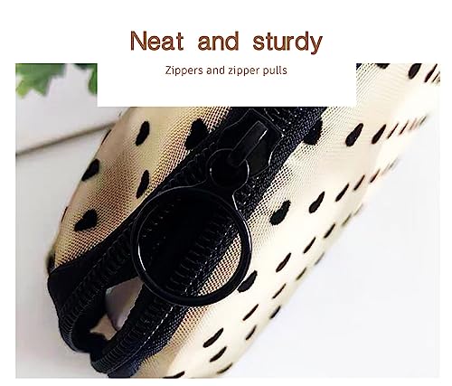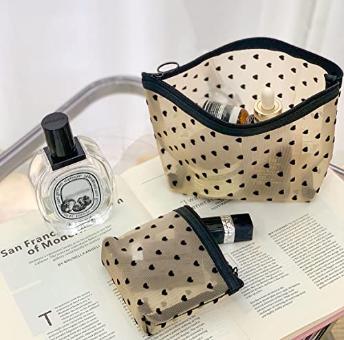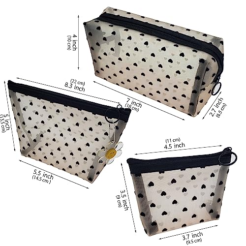 3 Pieces Heart Print Mesh Makeup Bags Sets Zipper Cosmetic Bag for Women Girls Toiletry Pouch Storage Organizer Bags Portable Travel Pouch Beige Home Office Smiley flower pendant