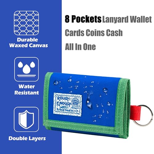 Rough Enough Trifold Wallet for Boys and Girls with Neck Lanyard Keychain Clip Hook Bundle Set 7