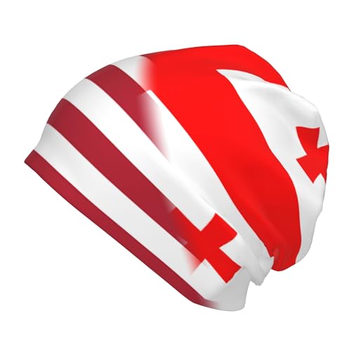 American Flag and Georgian Flag Children Hip Hop Knitted Hat Kids Elastic Leisure Knit Cap Warm Sleep Beanies Black 1