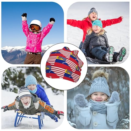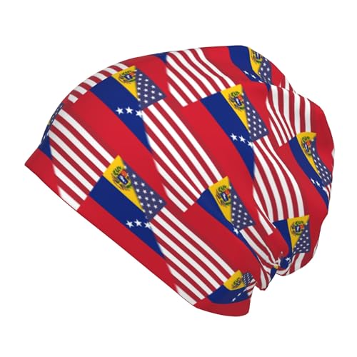 American Flag and Venezuelan Flag Children Hip Hop Knitted Hat Kids Elastic Leisure Knit Cap cozy Sleep Beanies Black