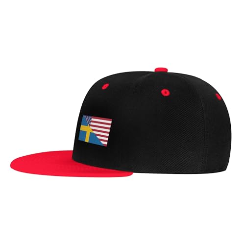 American Flag and Swedish Flag Children's Flat Brimmed Hip-hop Hat Flat Eave Sunscreen Duckbill Cap Headgear 1