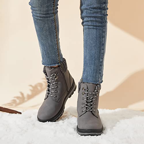 BABUDOG Womens Waterproof Ankle Boots for Outdoor (Non Slip Outsole),Fashion Combat Boots with Side Zipper,snug Fur Lined Winter Snow Boots