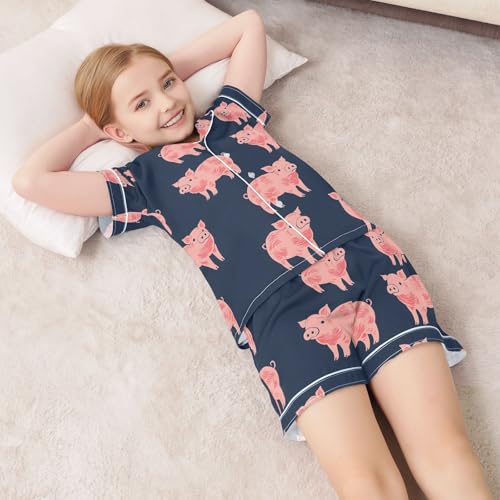 ALAZA Blue Pig Cartoon Satin Pajamas Set Short Sleeve Button Down Sleepwear Summer Pjs 2 Piece 7