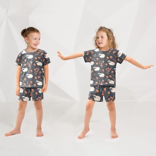 ALAZA Sheep Flower Vintage Pajamas Short Sleeve 2 Piece Sleepwear Top and Bottom Pajama Set Unisex 2