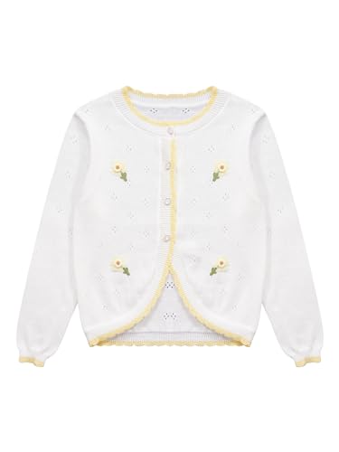 Kids Girls Flower Knitted Cardigan Long Sleeve Sweater Bolero Shrug Jacket Coat Top Dress Cover Up Outerwear 6