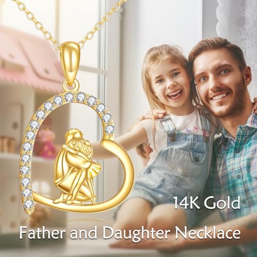 DOVRAN 14K Solid Yellow Gold Father Daughter Necklace Dad Pendant Dainty Real Gold Jewelry Gifts for Her 16”-18”