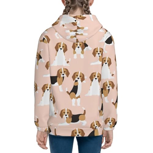 Beagle Dog On Brown Kids Pullover Hoodies Boys Zip Up Sweatshirts Girls Athletic Clothes with Pocket 5