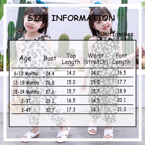 • ★Size: The baby girls summer pant set is suitable for 6-12 months, 12-18 months, 18-24 months, 2-3 years, 3-4 years toddler girls. And you can choose from the size chart(The measurement is entire manual measurements, the error range is 2-3cm).