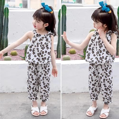 • ★Design: This toddler girls summer pant set is designed with halter strap shirt, sleeveless, daisy print, elastic waist trousers and ruffled elastic cuffs,summer cool thin style,chiffon material.