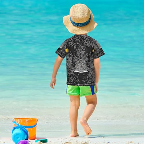 Boys Short Sleeve T-Shirts Cat Black Leopard Animal Rashguard Kids Swim Shirts Sun UPF 50+ 2
